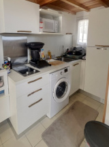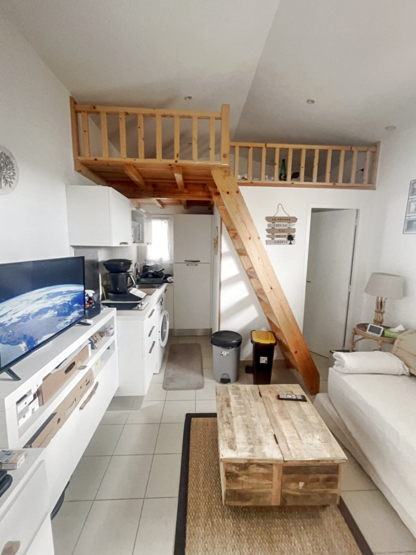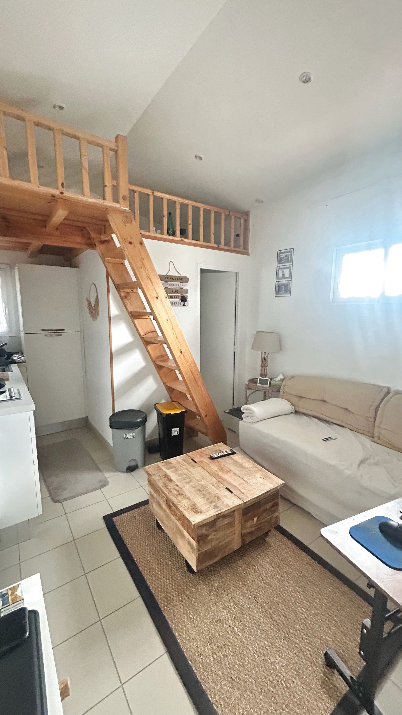 Dans un secteur calme et résidentiel, à deux mindu chateau, petite maisonnette climatisée indépendante de 14.70m2 entièrement rénové et meublé. Elle se compose d'une pièce principale avec kitchenette, une mezzanine, une salle de douche avec toilette. La terrasse est privée et bénéficie d'une vue dégagée jusqu'à la mer. Charge de 20€ pour les parties communes. Le loyer ne comprend pas l'eau et l'électricité. Disponible courant novembre. 1 place de parking complète cette offre. Plus d'information sur demande.