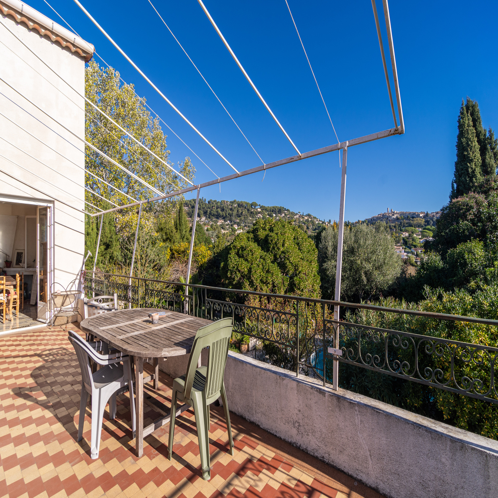 *** VENDU *** Située dans dans un quartier calme de LA COLLE SUR LOUP, proche des axes et des commodités, villa de 109m2 + annexes composée au rez-de-chaussée, d'une entrée, un toilette invité, un séjour-salle à manger très lumineux donnant sur une belle terrasse avec vue carte postale sur le village de Saint Paul de Vence, une cuisine séparée, trois chambres avec placards, une salle de bains.