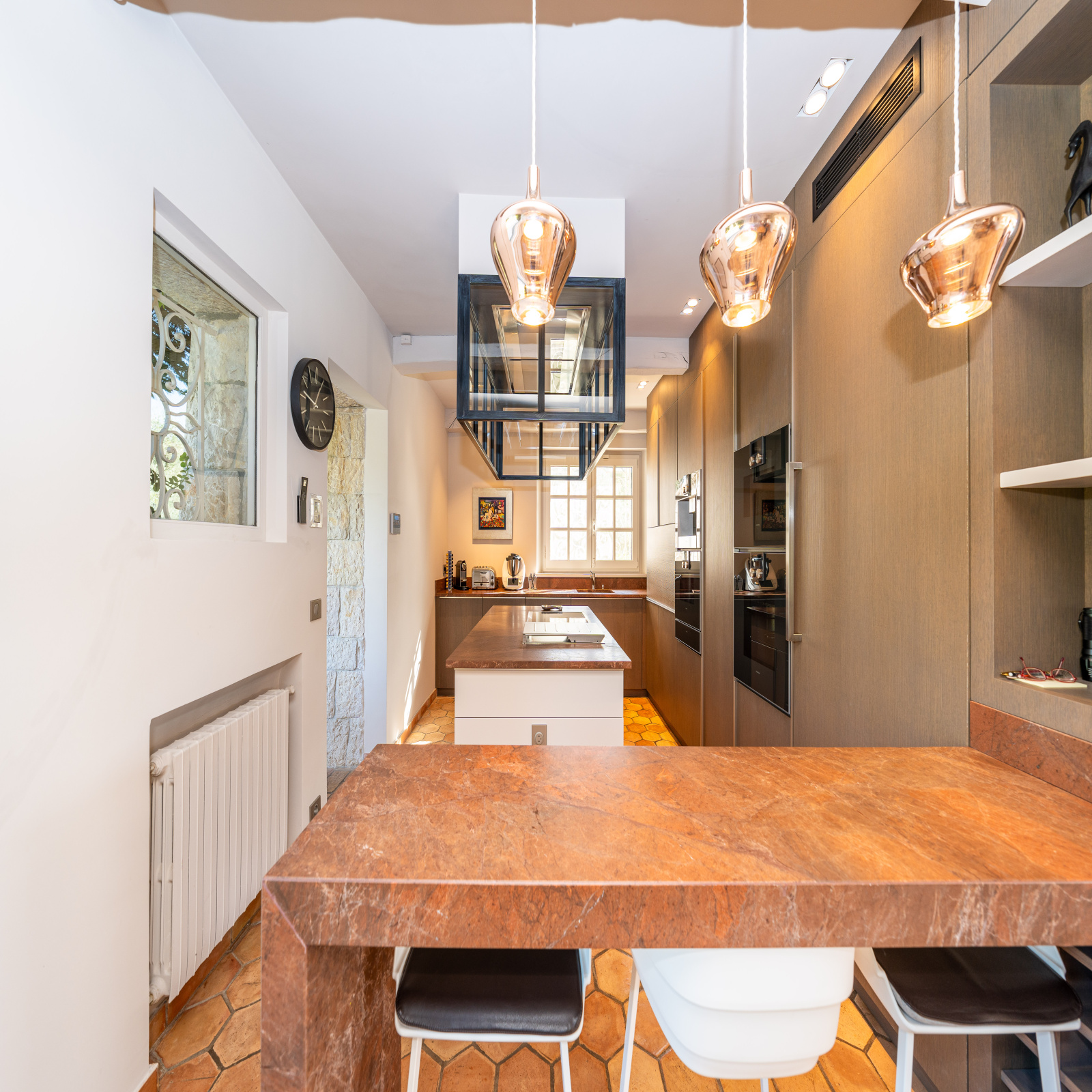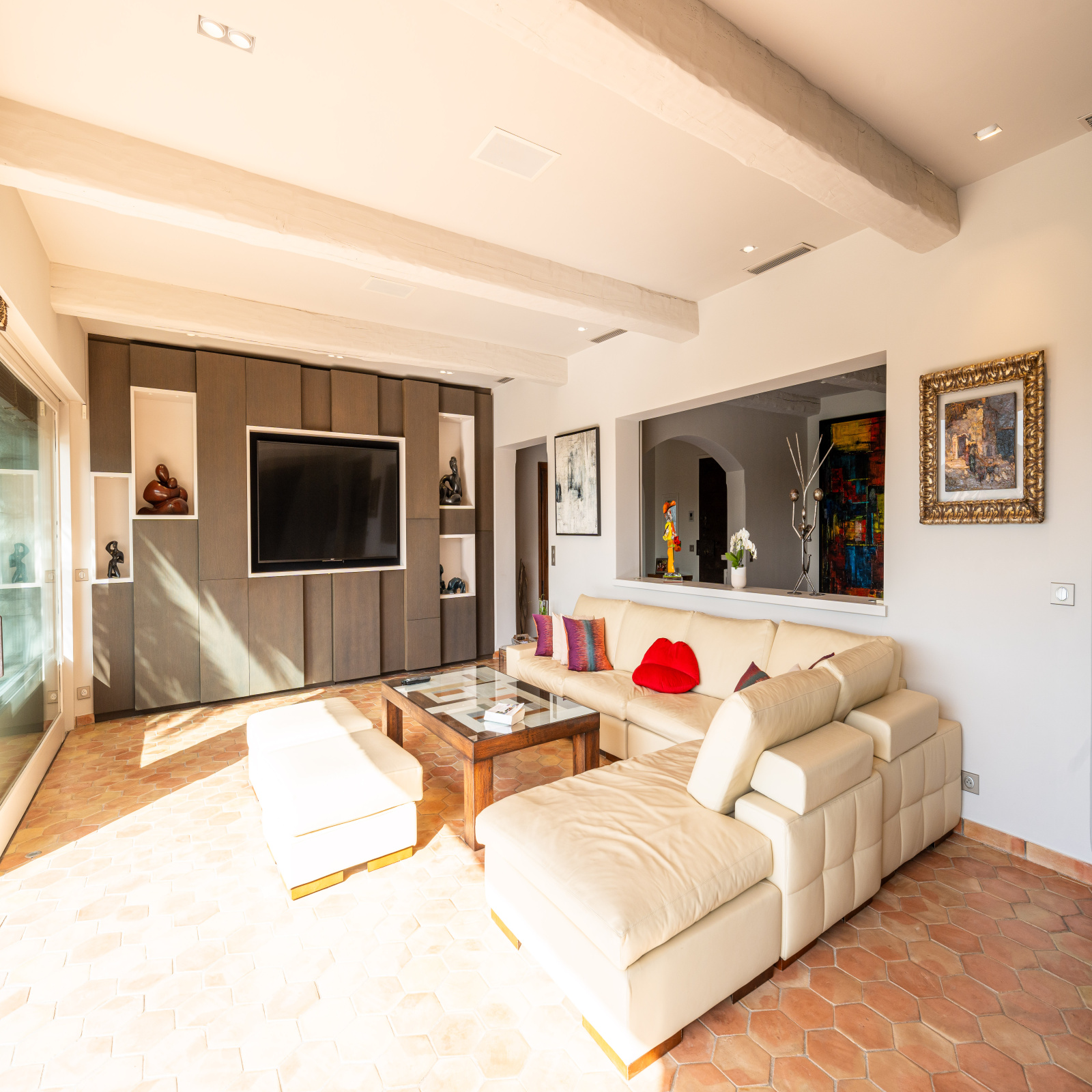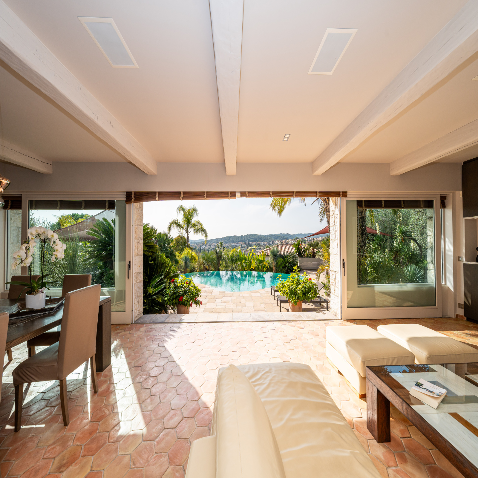 Entièrement de plain-pied, on retrouve une très belle entrée desservant un espace de réception de près de 100m2 avec vue carte postale sur le village de LA COLLE et SAINT PAUL, une cuisine équipée avec appareils haut de gamme ainsi qu’un cellier buanderie avec entrée de service.