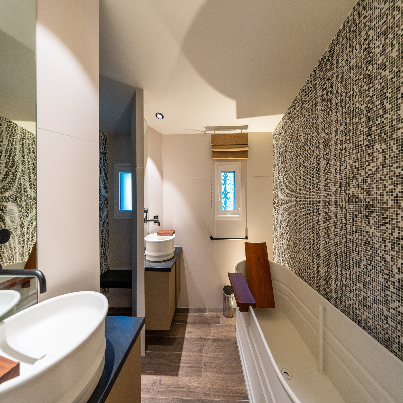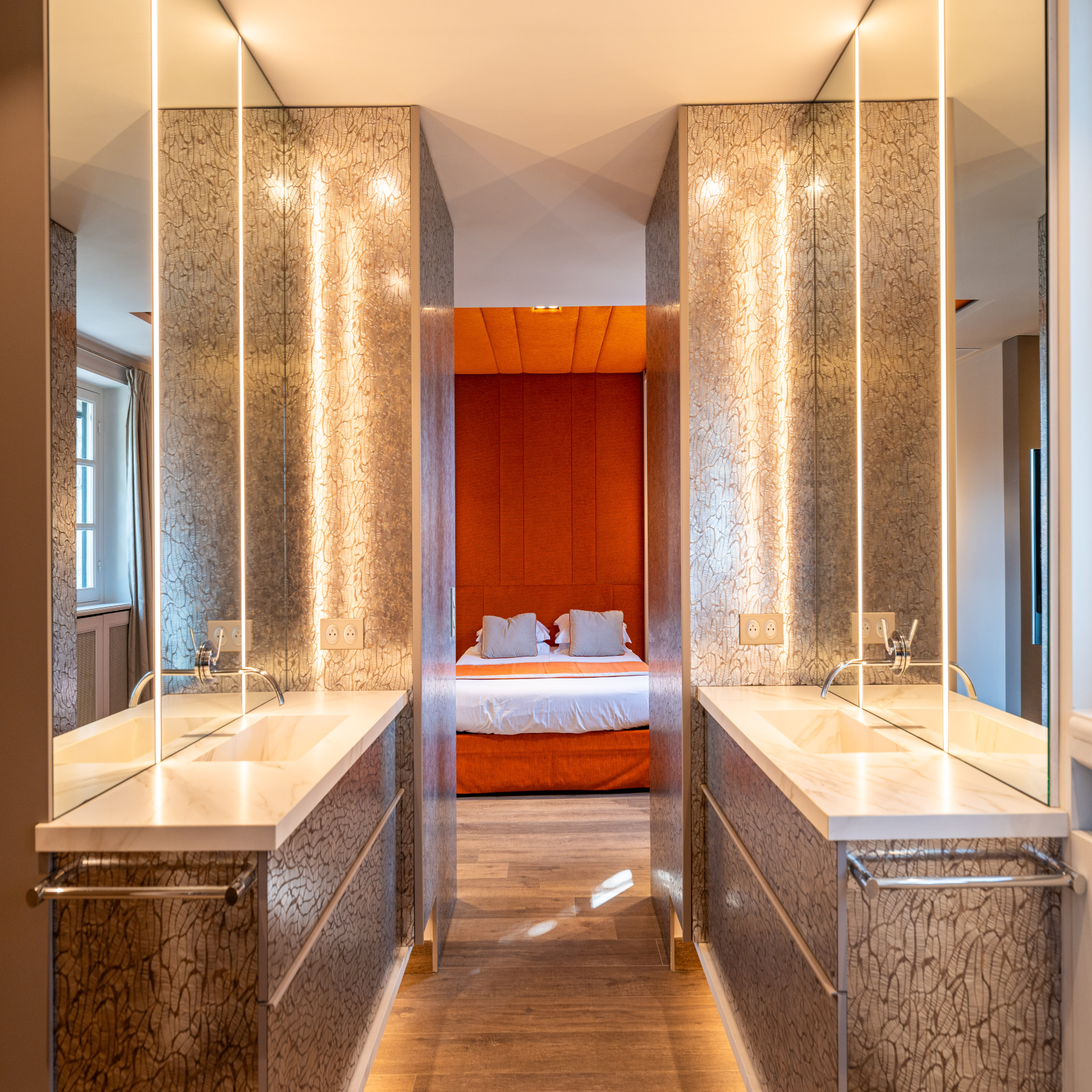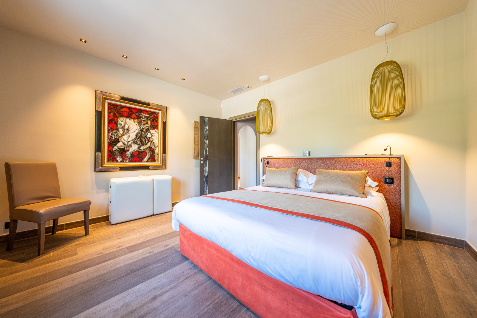 L’espace de nuit se décompose quant à lui d’une chambre d’amis avec salle de douche et dressing, une chambre en suite avec dressing, salle de bains et douche, un toilette invité, un bureau, ainsi qu’une magnifique master room avec dressing complet et luxueux, une double douche à l’italienne, un toilette séparé, bidet