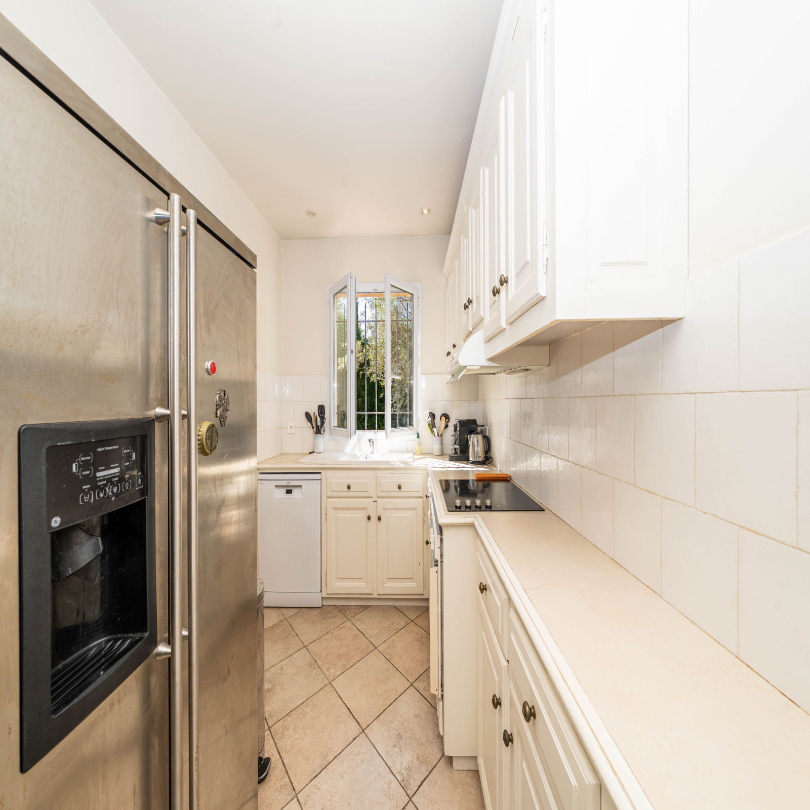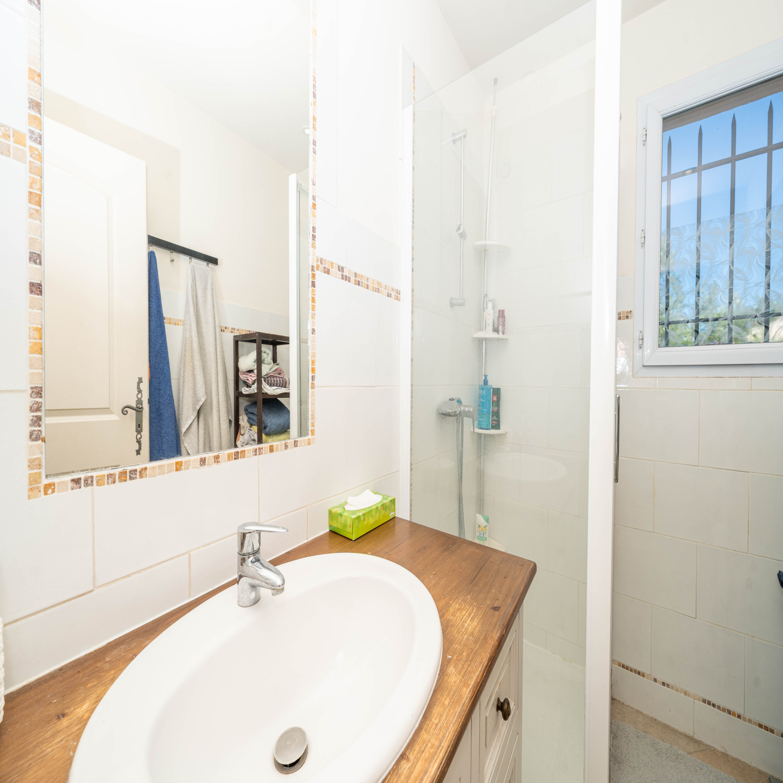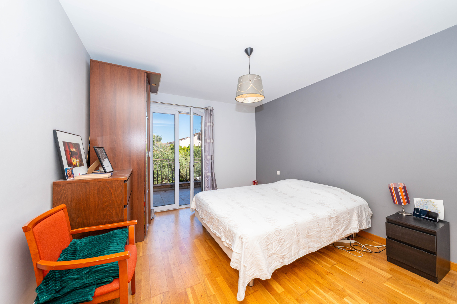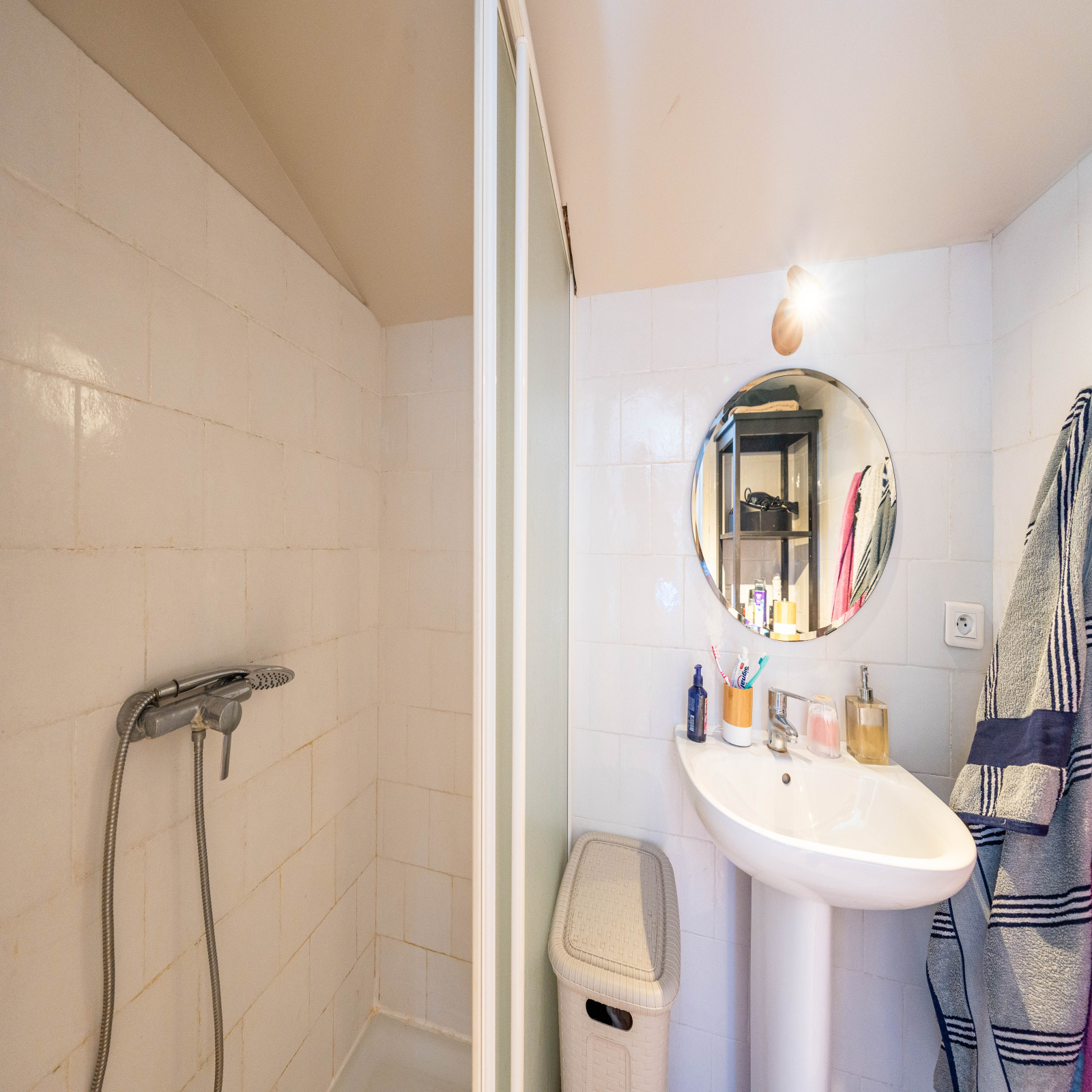 Au dernier niveau, une grande chambre mansardée de 20 m² avec salle d’eau bénéficie d’une vue sur le village de Saint-Paul-de-Vence.