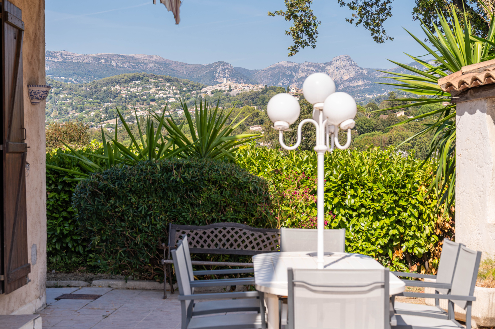 En position dominante, avec une vue dégagée sur les collines et le village de Saint-Paul-de-Vence, cette villa individuelle de 133 m² séduit par sa luminosité et son cadre privilégié. Édifiée sur un terrain de 863 m², elle profite d’un ensoleillement généreux grâce à ses multiples expositions.