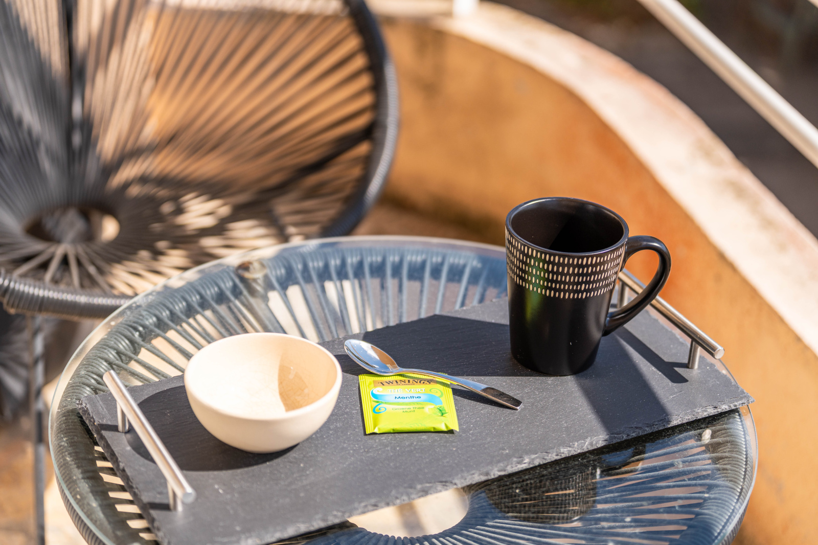 Toutes les pièces sont climatisées pour un confort optimal en été, et ouvrent directement sur la terrasse ou le balcon, offrant une vue dégagée jusqu'à sur la mer.