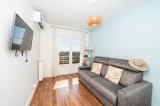 L’appartement dispose de deux chambres avec rangements intégrés, d’une salle d’eau avec douche à l’italienne, ainsi que de toilettes indépendants pour les invités.