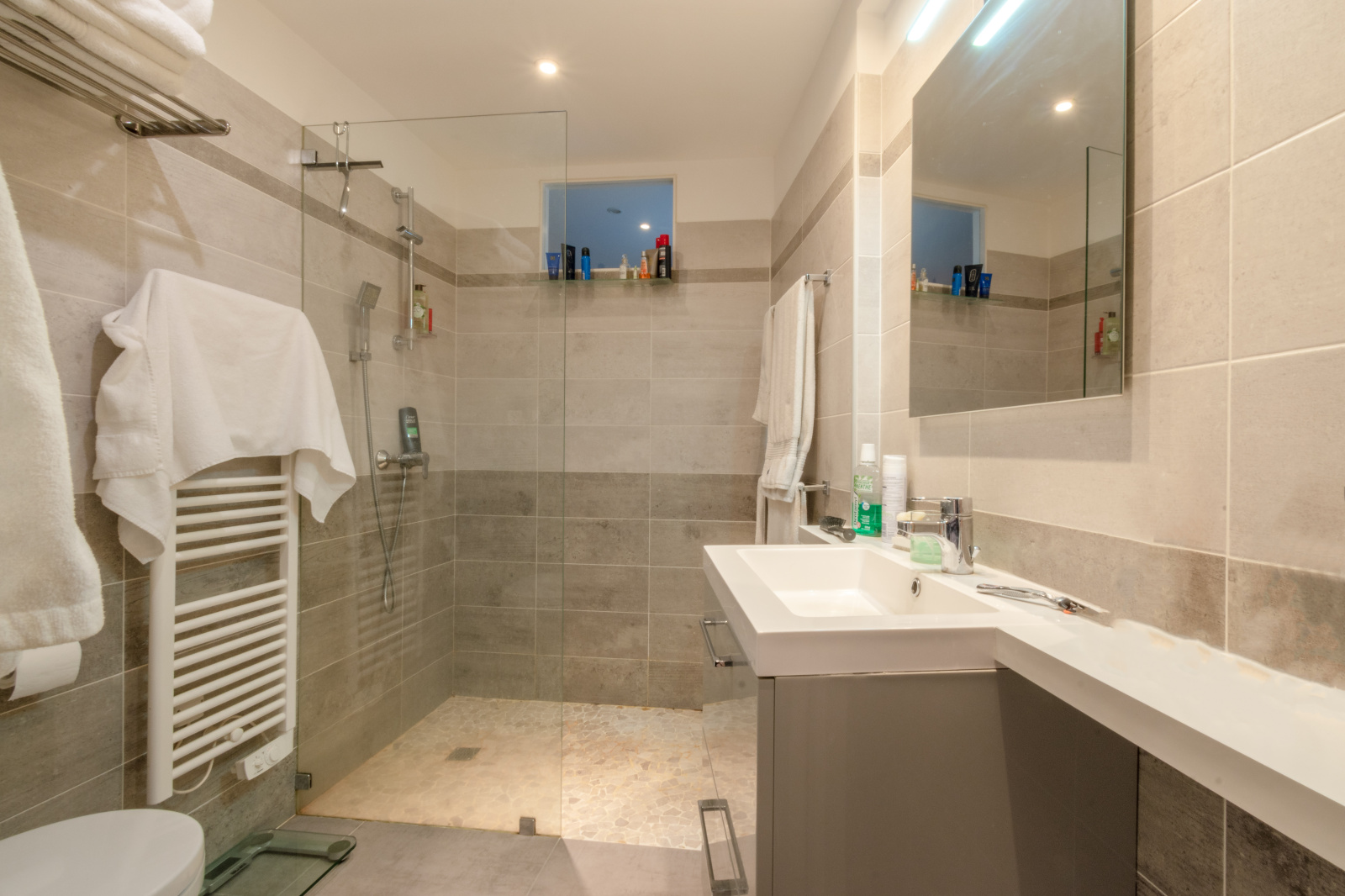 Au rez-de-chaussée, elle comprend une entrée, une suite parentale avec salle de douche, WC et dressing aménagé, ainsi qu’un espace buanderie.