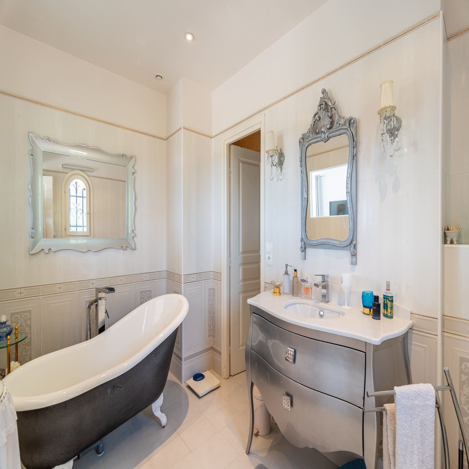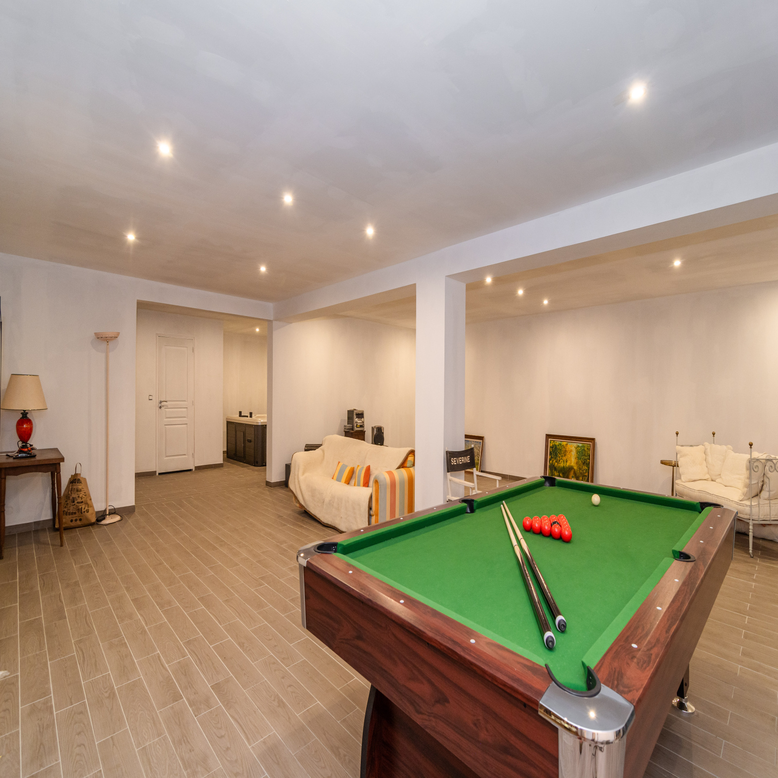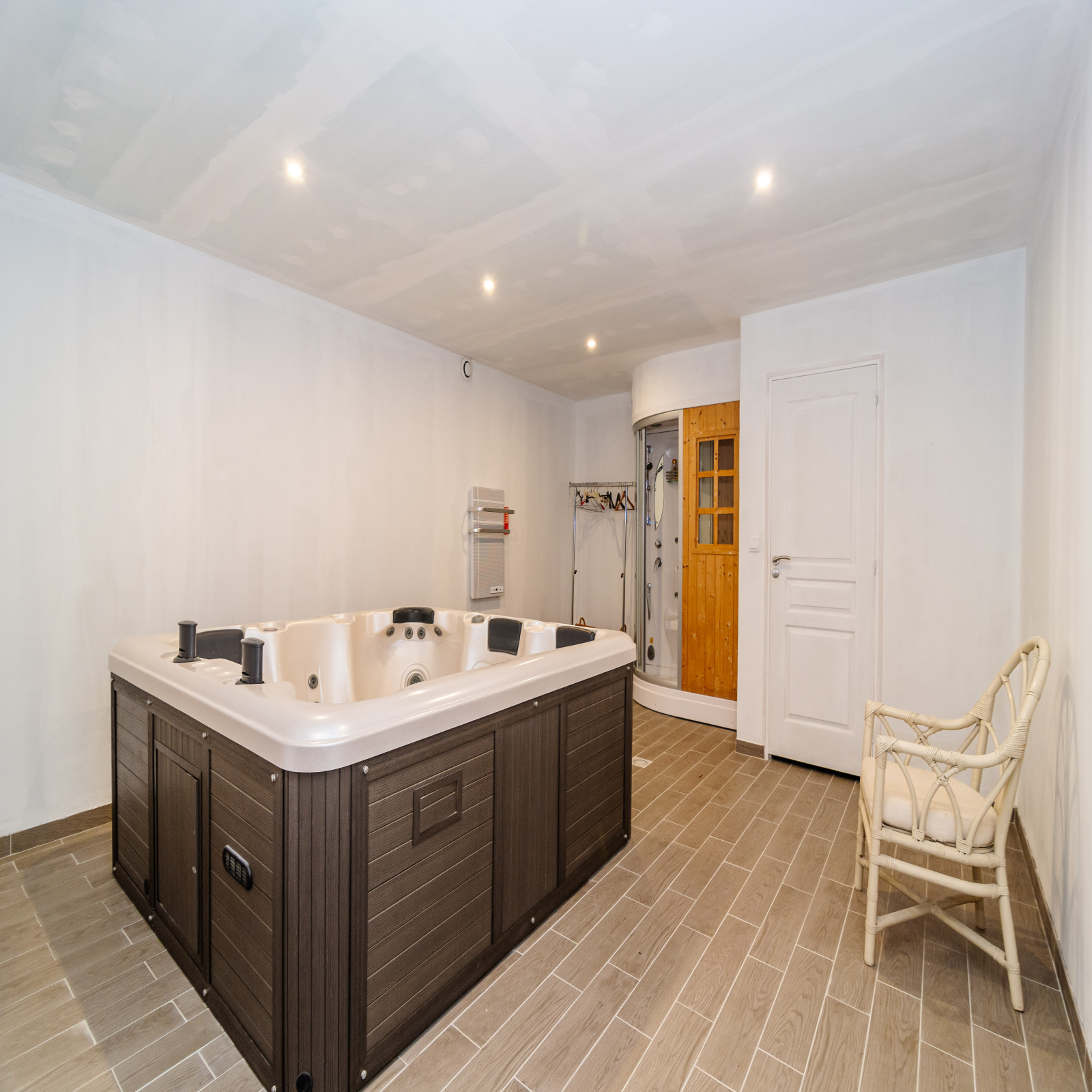 Cette villa nous réserve encore des surprises avec son sous-sol de 130m² dédié au bien-être (jacuzzi, sauna, douche, toilette, espace billard et TV). S'ajoute un double garage, un local technique et cerise sur le gâteau : Un appartement de 94m² avec grande pièce de 52 m², deux chambres en suite avec salle de douches et toilette, un jardinet privé. Il est idéal pour recevoir de la famille, loger du personnel ou bien louer pour obtenir des revenus locatifs.