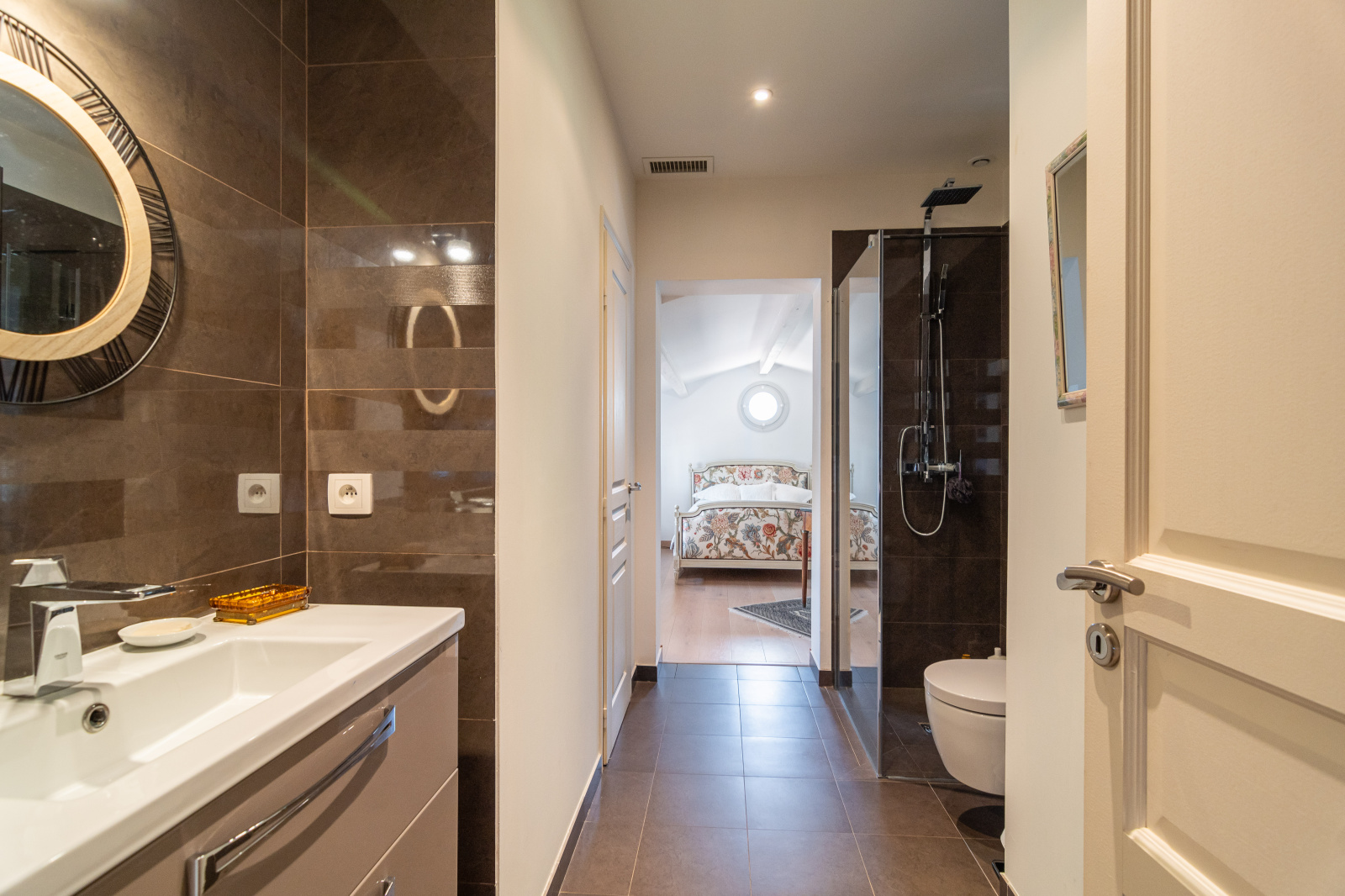 - À l'étage, on retrouve une seconde suite parentale de 44m² avec terrasse et balconnet, dressing, salle de bains, et toilette séparé, ainsi que deux autres chambres avec salle de douches privée et toilette.
