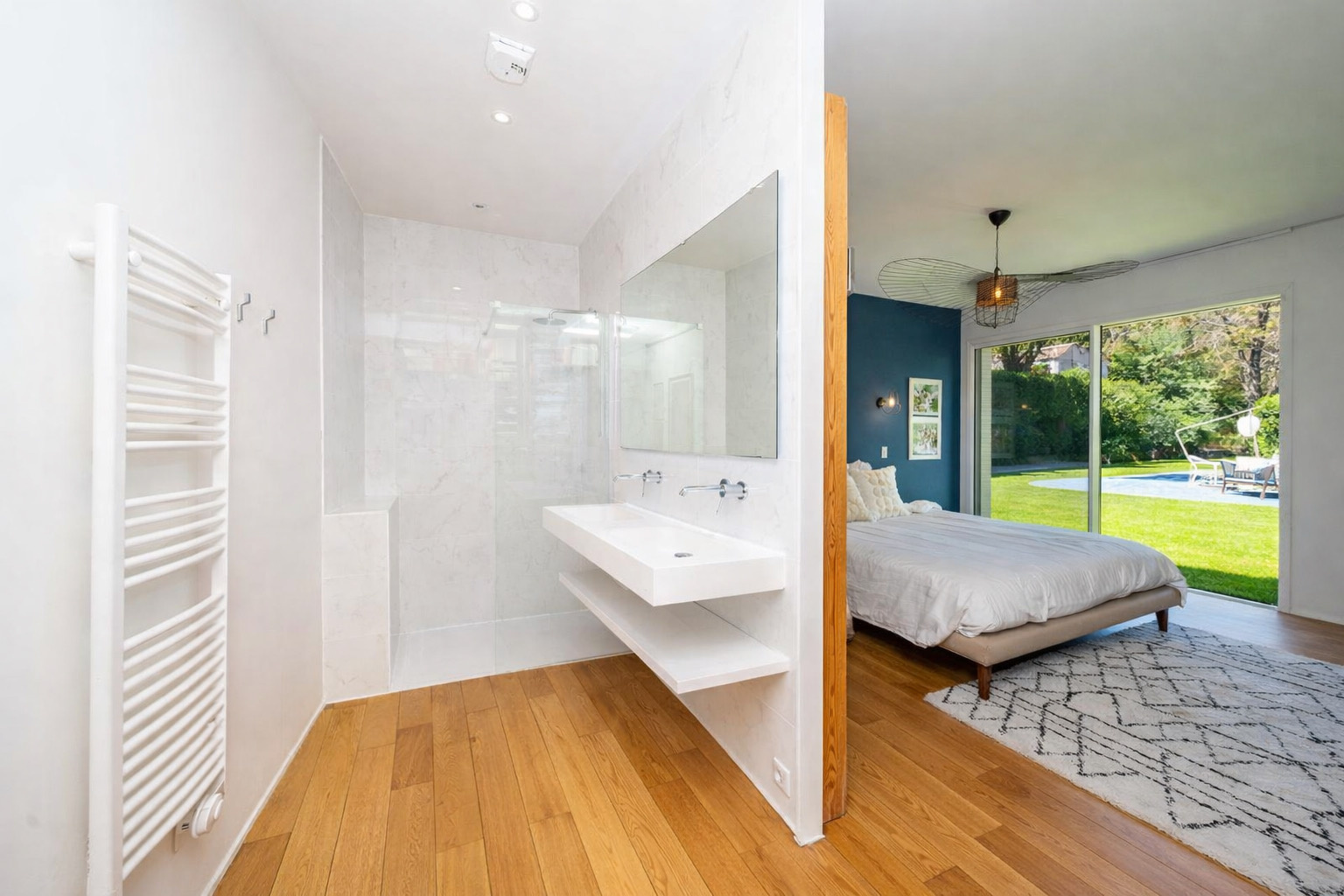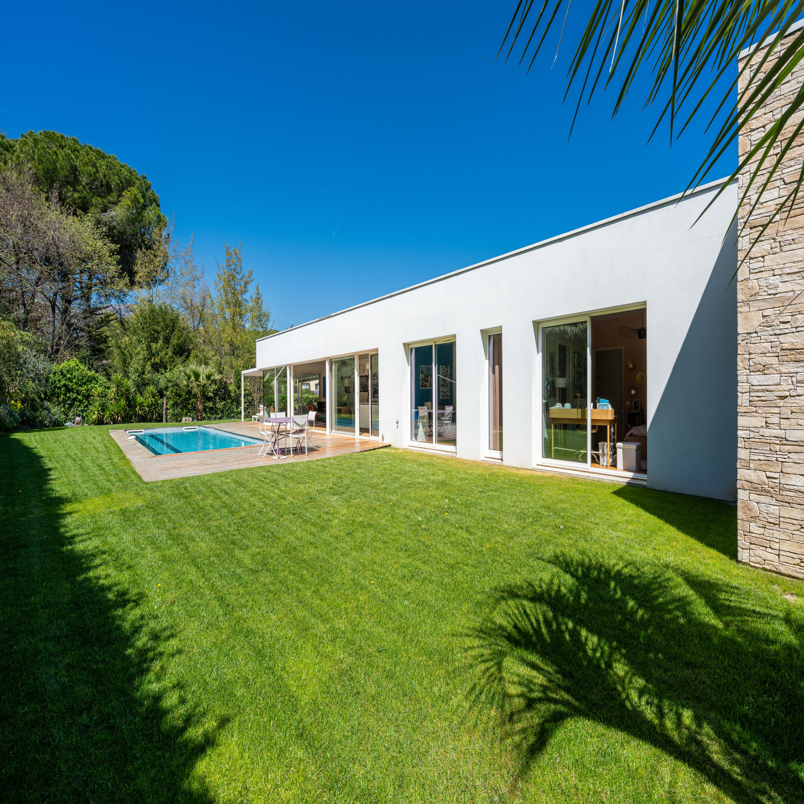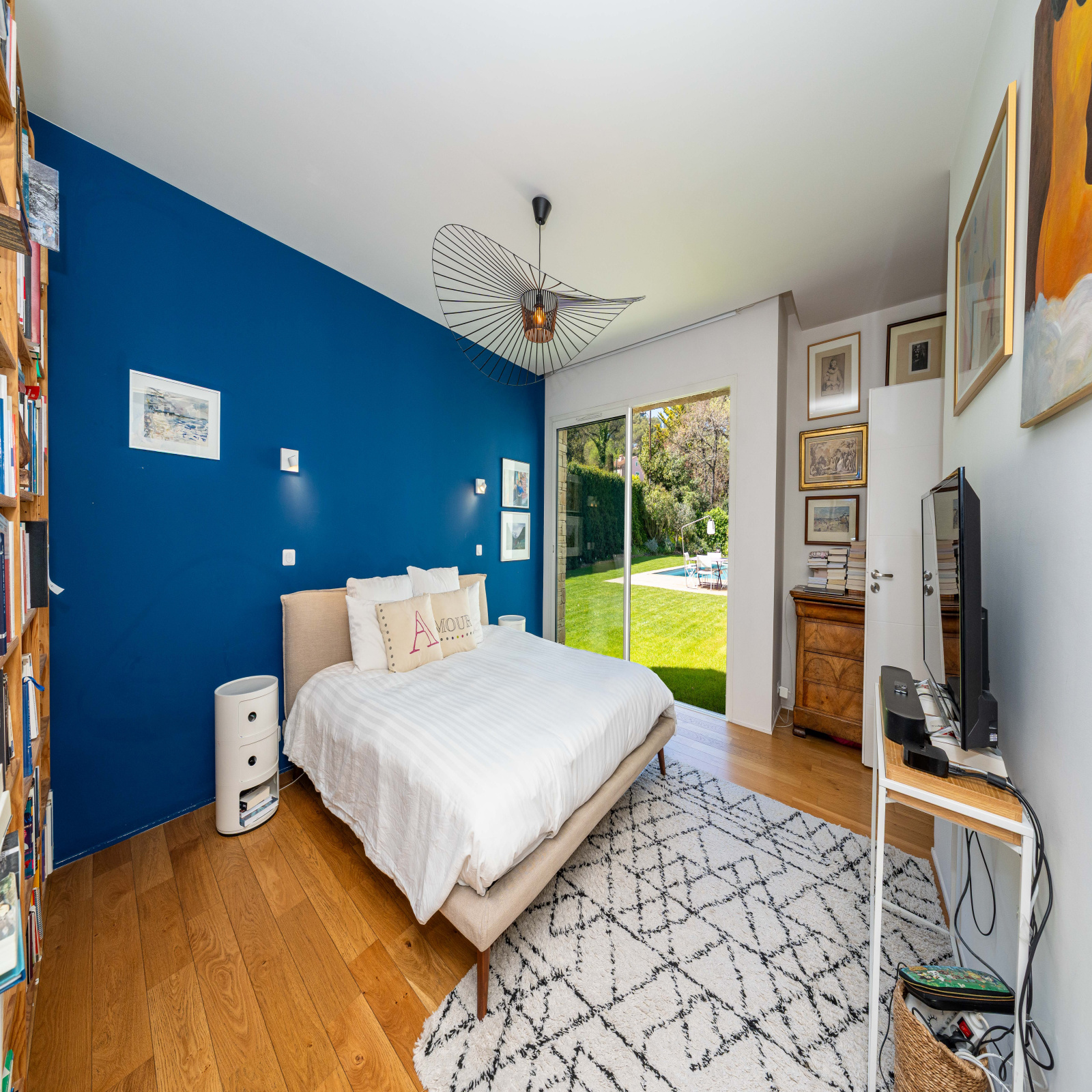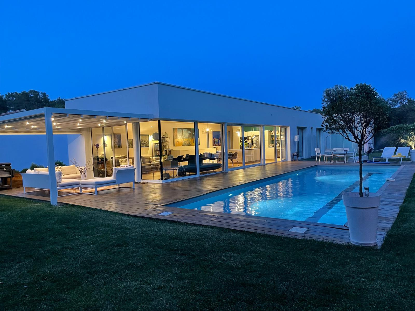 À quelques minutes à pied du célèbre village de Saint-Paul-de-Vence et de la fondation MAEGHT cette propriété unique signée par un architecte de renom inspirée du courant BAUHAUS incarne un art de vivre minimaliste et élégant. Edifiée en 2019, cette maison « clé en main » séduit par ses lignes épurées, sa luminosité exceptionnelle et son concept dedans/dehors parfaitement maîtrisé. La pièce de vie, prolongée par une pergola, s’ouvre largement sur le jardin grâce à un angle vitré sans menuiserie, signature architecturale forte. La cuisine, avec son ilot central, est idéale pour recevoir en toute convivialité. Côté nuit, on retrouve une magnifique suite parentale avec dressing, salle d’eau et toilette, deux chambres avec salle de bains communicante, ainsi qu'une autre chambre avec salle d'eau. La plupart des pièces bénéficient d’un accès direct au jardin, dans un environnement verdoyant avec vue sur les collines de Vence. Un appartement indépendant très confortable de type loft de 40m2 vous permettra de recevoir aisement de la famille ou des amis. Le jardin paysager accueille une piscine chauffée et au sel de 12,5 m X 4m, des espaces de détente et une ambiance méditerranéenne soignée. Prestations haut de gamme : parquet chêne massif continu, cuisine italienne équipée, plancher chauffant et rafraîchissant, rangements sur mesure. Entretien facile, confort optimal. Plusieurs abris voitures, nombreux rangements, atelier et cave complètent cette offre d'exception. Un bien rare, où l’architecture se fait discrète pour mieux révéler un art de vivre subtil, au cœur d’un village profondément empreint d’un héritage artistique intemporel.