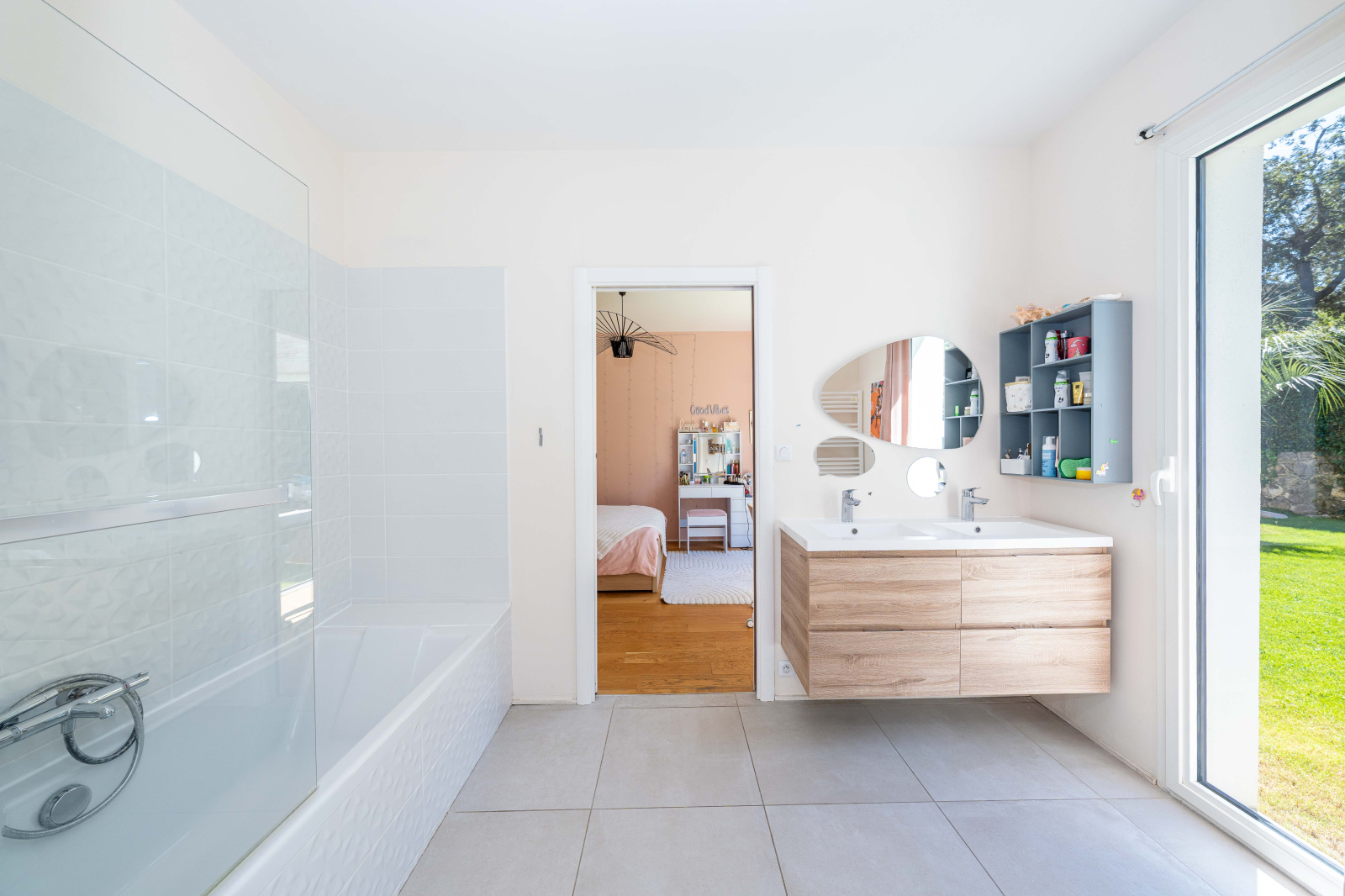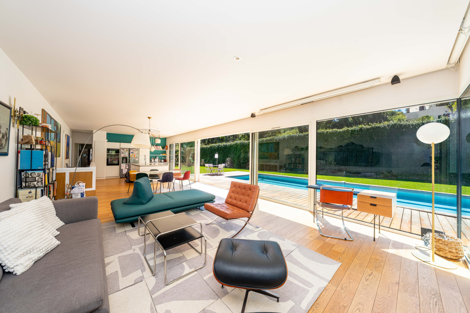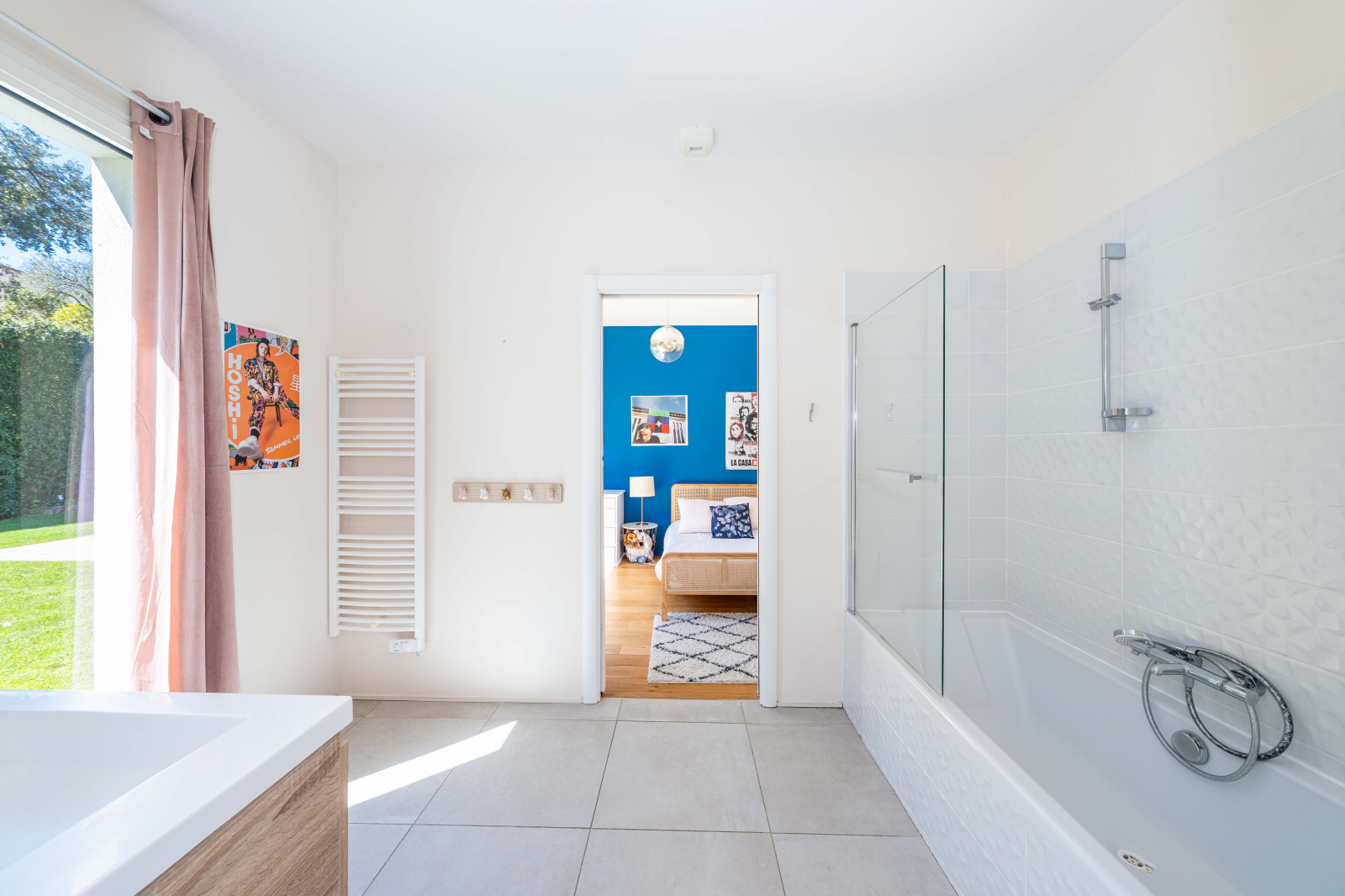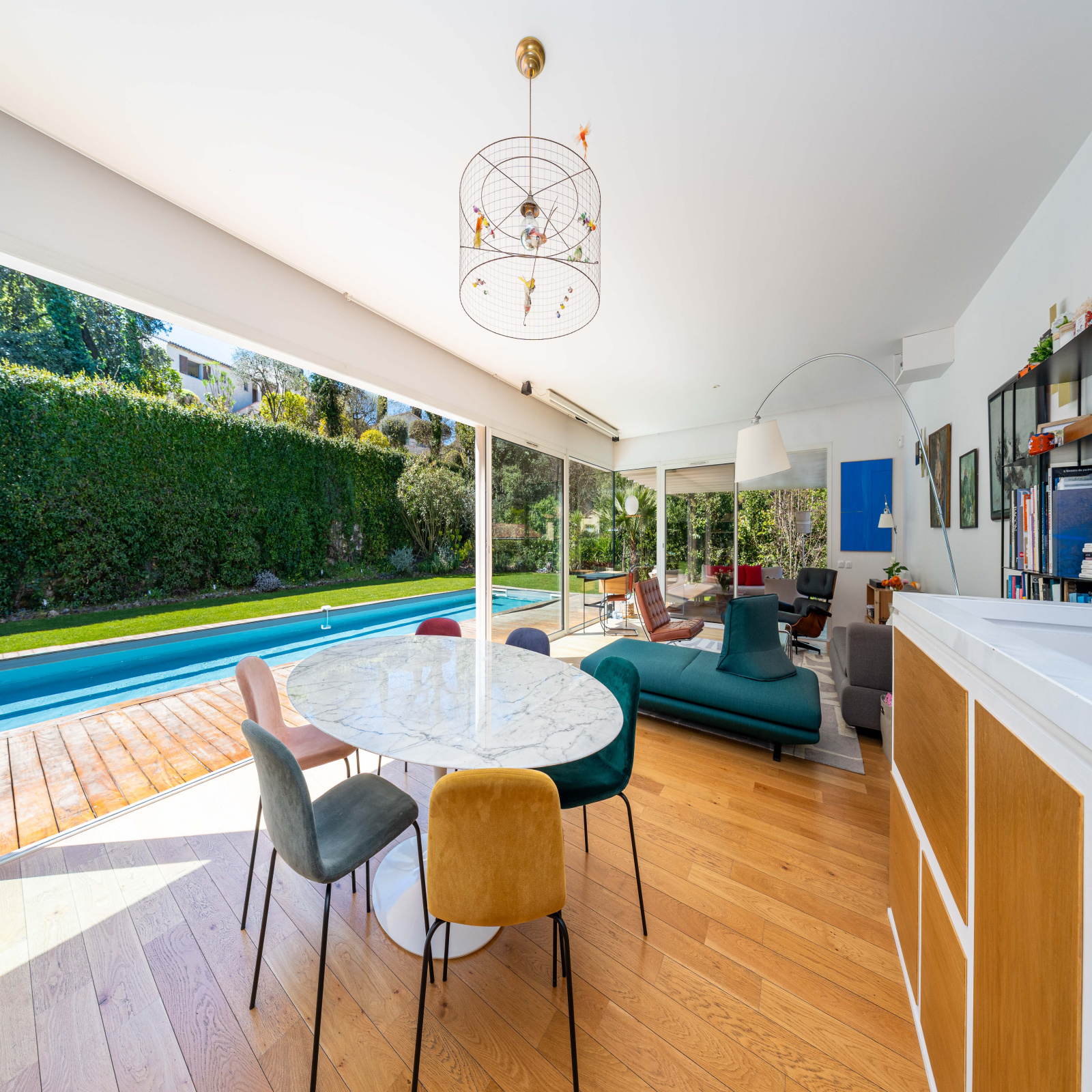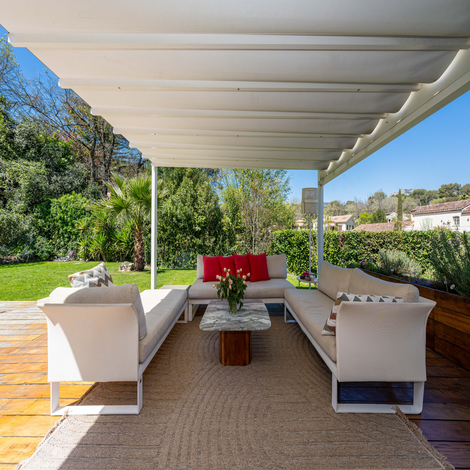 À quelques minutes à pied du célèbre village de Saint-Paul-de-Vence et de la fondation MAEGHT cette propriété unique signée par un architecte de renom inspirée du courant BAUHAUS incarne un art de vivre minimaliste et élégant. Edifiée en 2019, cette maison « clé en main » séduit par ses lignes épurées, sa luminosité exceptionnelle et son concept dedans/dehors parfaitement maîtrisé. La pièce de vie, prolongée par une pergola, s’ouvre largement sur le jardin grâce à un angle vitré sans menuiserie, signature architecturale forte. La cuisine, avec son ilot central, est idéale pour recevoir en toute convivialité. Côté nuit, on retrouve une magnifique suite parentale avec dressing, salle d’eau et toilette, deux chambres avec salle de bains communicante, ainsi qu'une autre chambre avec salle d'eau. La plupart des pièces bénéficient d’un accès direct au jardin, dans un environnement verdoyant avec vue sur les collines de Vence. Un appartement indépendant très confortable de type loft de 40m2 vous permettra de recevoir aisement de la famille ou des amis. Le jardin paysager accueille une piscine chauffée et au sel de 12,5 m X 4m, des espaces de détente et une ambiance méditerranéenne soignée. Prestations haut de gamme : parquet chêne massif continu, cuisine italienne équipée, plancher chauffant et rafraîchissant, rangements sur mesure. Entretien facile, confort optimal. Plusieurs abris voitures, nombreux rangements, atelier et cave complètent cette offre d'exception. Un bien rare, où l’architecture se fait discrète pour mieux révéler un art de vivre subtil, au cœur d’un village profondément empreint d’un héritage artistique intemporel.