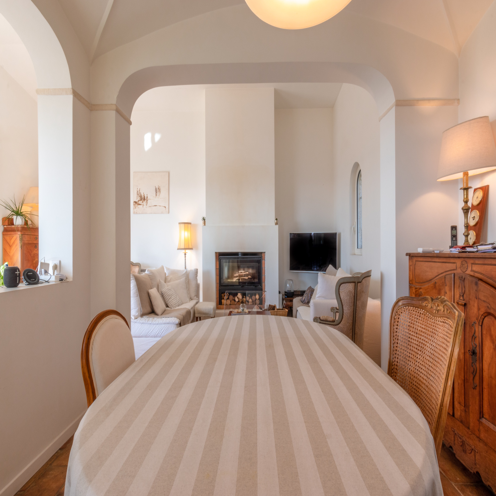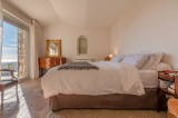 À l’étage, la pièce de vie lumineuse s’ouvre sur une terrasse avec une vue spectaculaire sur la mer. Un poêle à bois apporte chaleur et caractère à l’ensemble. La cuisine équipée d’un îlot central, est indépendante et idéalement située à mi-chemin entre la salle à manger intérieure et la terrasse couverte. Ce niveau accueille également une suite parentale donnant directement sur la piscine avec vue mer, un dressing aménagé, une salle de douches, un WC séparé, une buanderie et de nombreux rangements.
