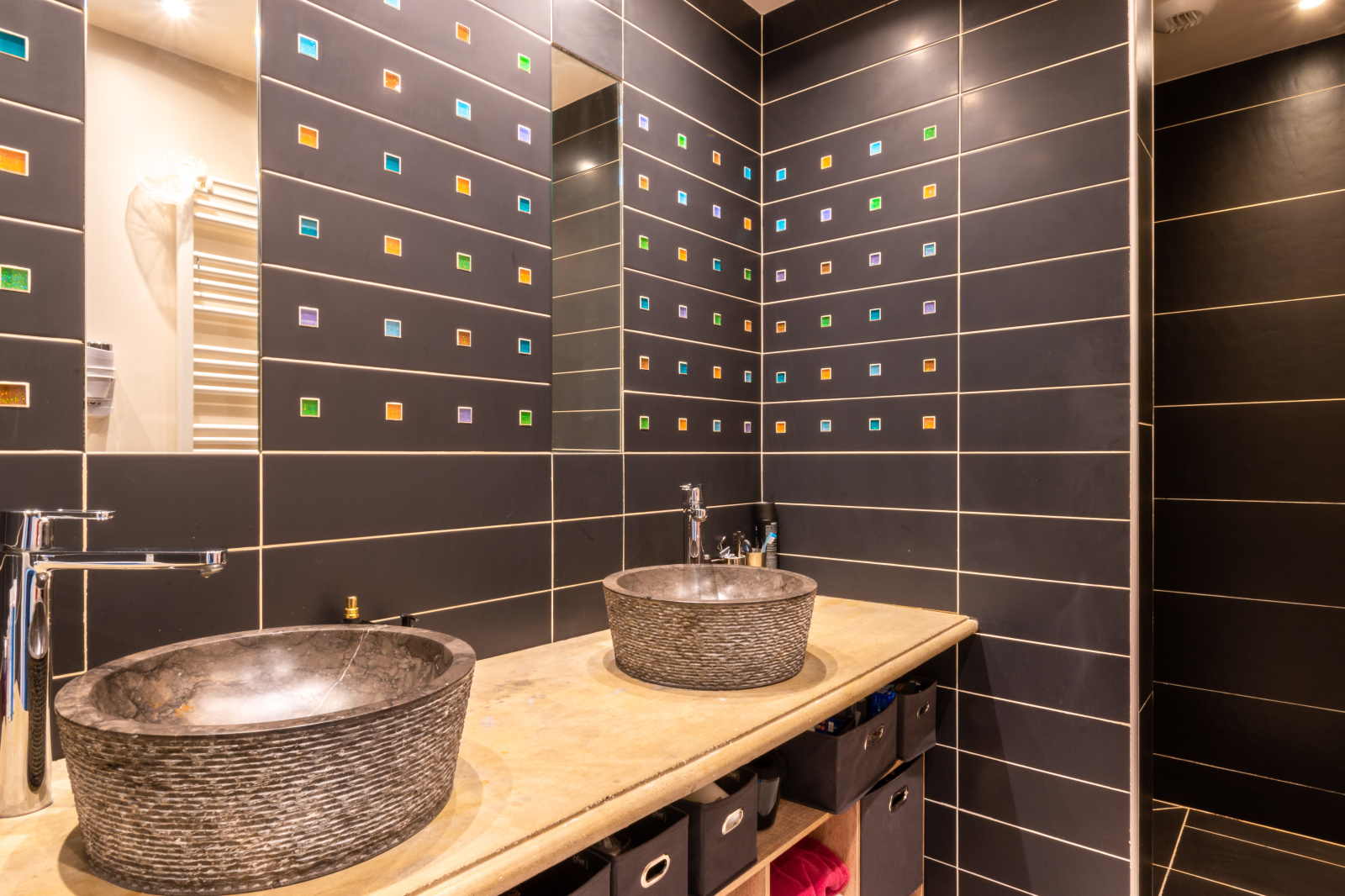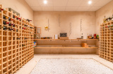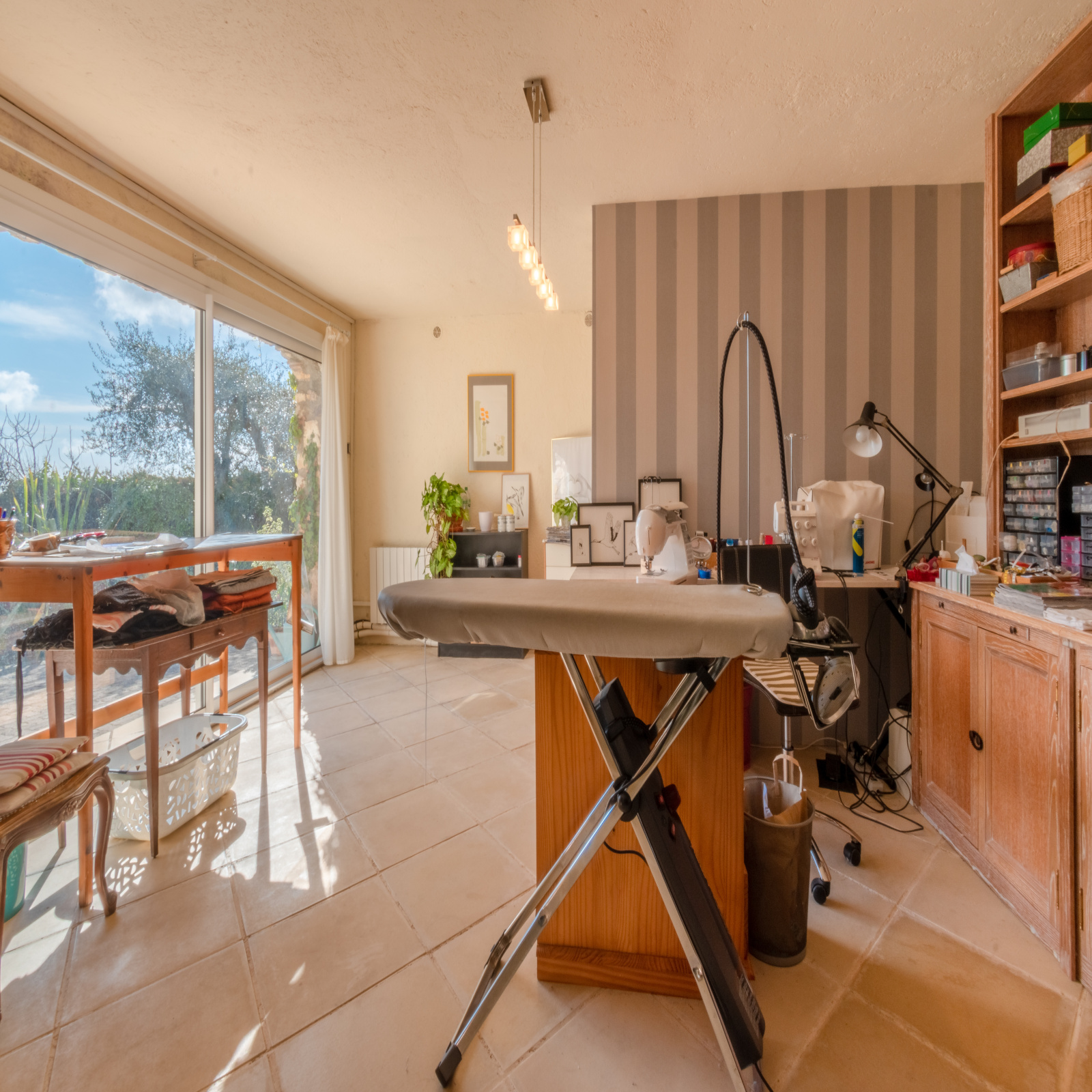 Au rez-de-chaussée, on retrouve l’entrée de la villa, qui dessert deux chambres, une salle de bains, un WC indépendant, une cave à vin, ainsi qu’un atelier lumineux, prêt à accueillir le projet de votre choix, qu’il soit personnel, artistique ou professionnel. Ce niveau comprend également une pièce avec salle de douche et accès indépendant. De nombreux espaces de rangement complètent l’ensemble.
