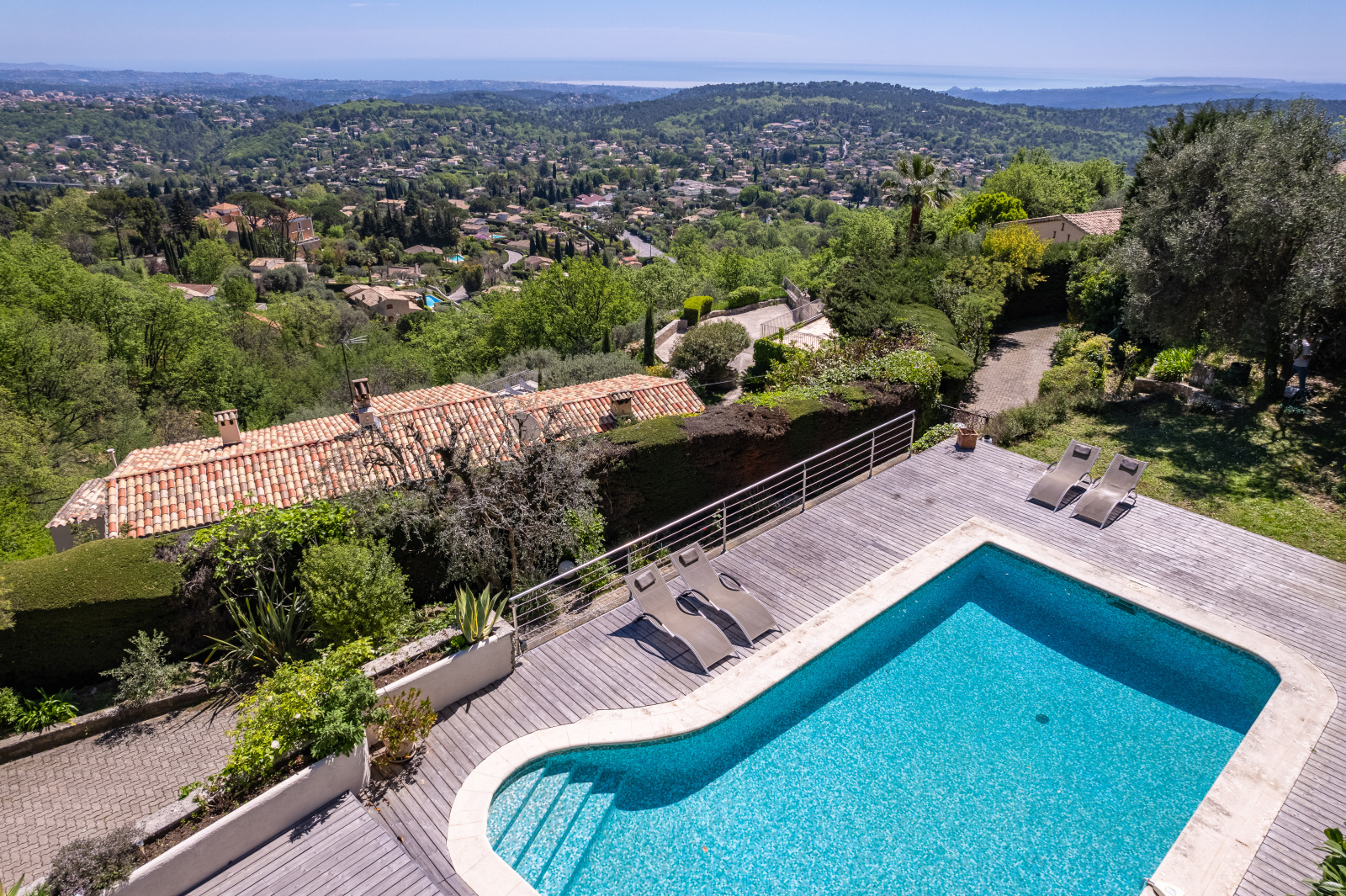En position dominante, au cœur d’un cocon de verdure sans aucun vis-à-vis, cette superbe villa provençale bénéficie d’un emplacement rare et recherché. Elle offre un cadre de vie exceptionnel, entre calme absolu, nature et une vue mer panoramique époustouflante, s’étendant des collines niçoises jusqu’à l’Esterel.