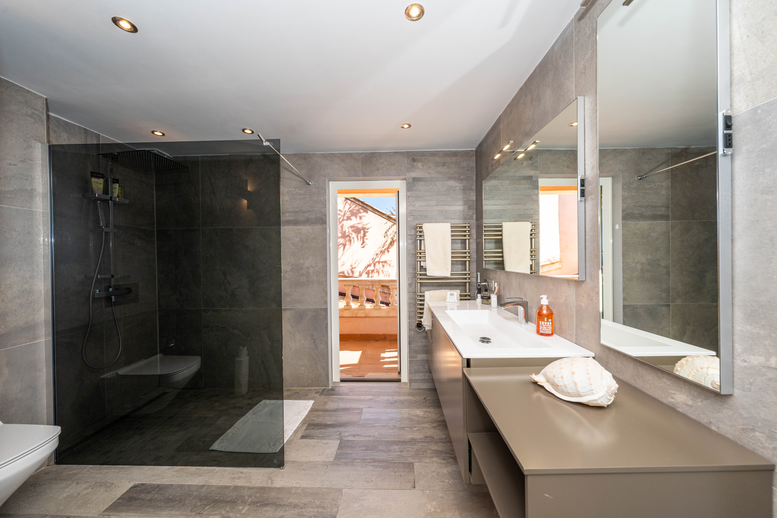 Les extérieurs constituent l’un des atouts majeurs de la propriété : de vastes terrasses ouvertes sur la mer, une piscine chauffée à débordement aux lignes élégantes, ainsi qu’un pool-house aménagé avec salon et grande cuisine d’été, pensé comme un véritable espace de vie supplémentaire.