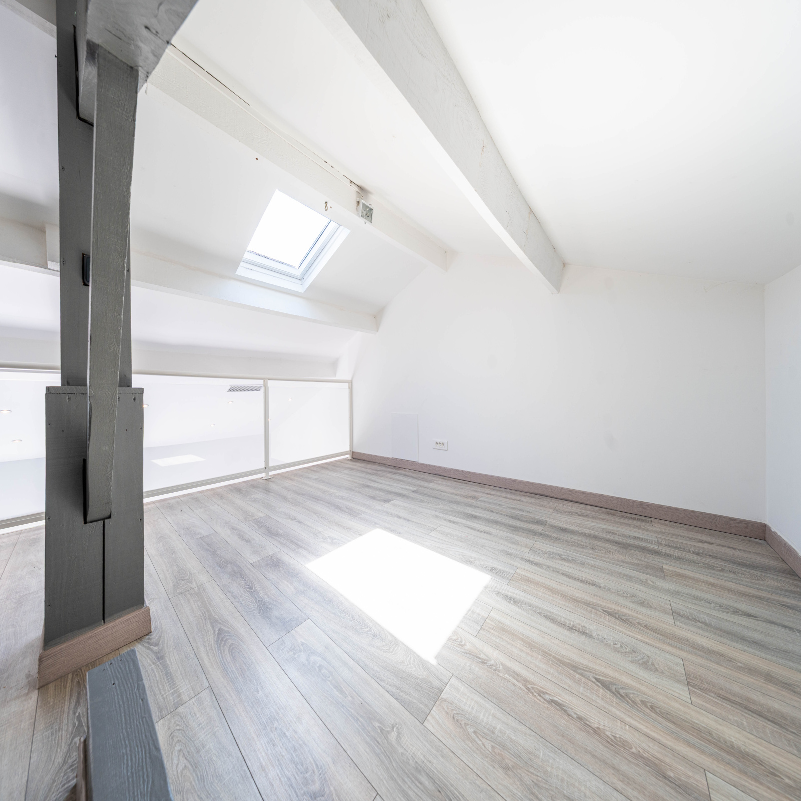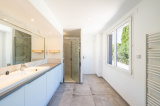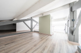 À l’étage, le séjour profite d’une belle hauteur sous plafond et s’ouvre sur une cuisine équipée et une salle à manger donnant accès à une grande terrasse ensoleillée. Deux chambres avec dressing se partagent une salle de douche centrale qui les relie de manière pratique et élégante.