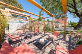 Le terrain plat de 1 200 m² offre de nombreux espaces de détente : coin repas, terrain de boules, jacuzzi 8 places et une vue dégagée. Un permis accordé autorise par ailleurs la construction d’une piscine.