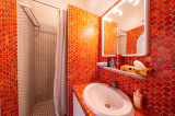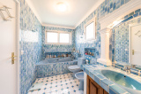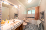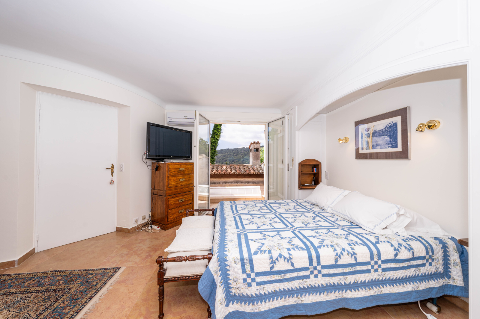 À l'étage, se trouve l'espace parental avec un hall, une chambre climatisée ouvrant sur une terrasse tropézienne, une salle de bains avec WC et un dressing.