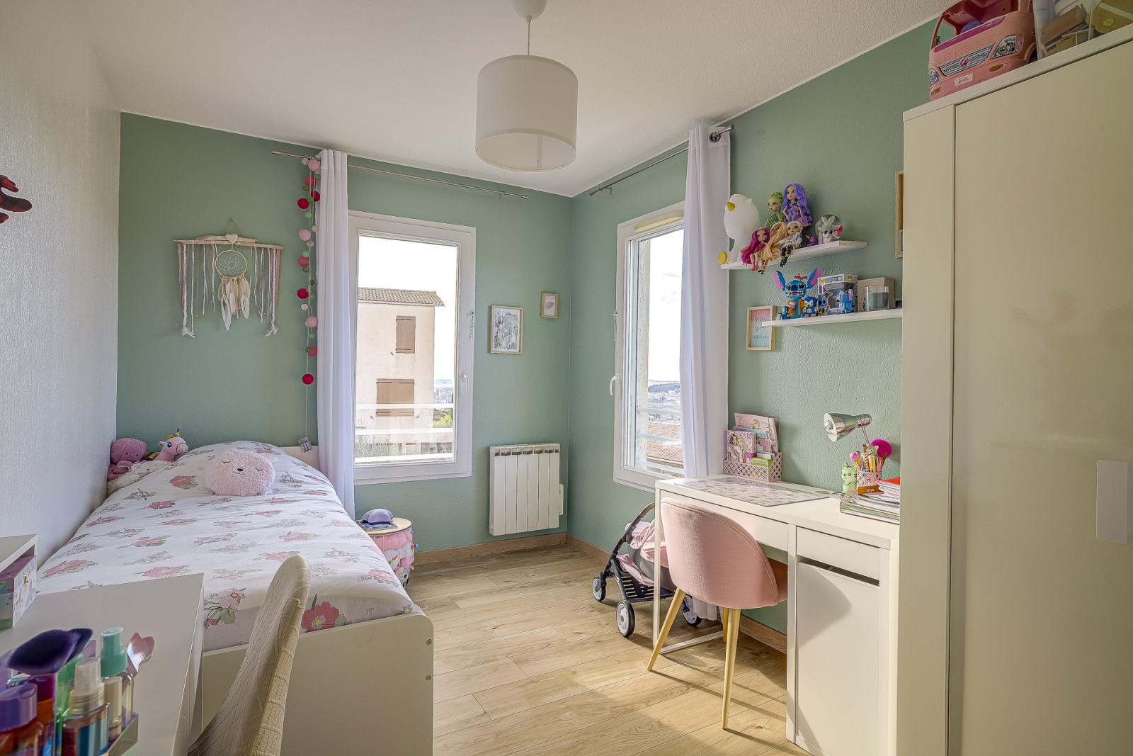 Le 2ᵉ étage accueille trois chambres lumineuses, toutes dotées de placards intégrés, garantissant un rangement optimal. Une salle de bain moderne avec wc complète ce niveau.
