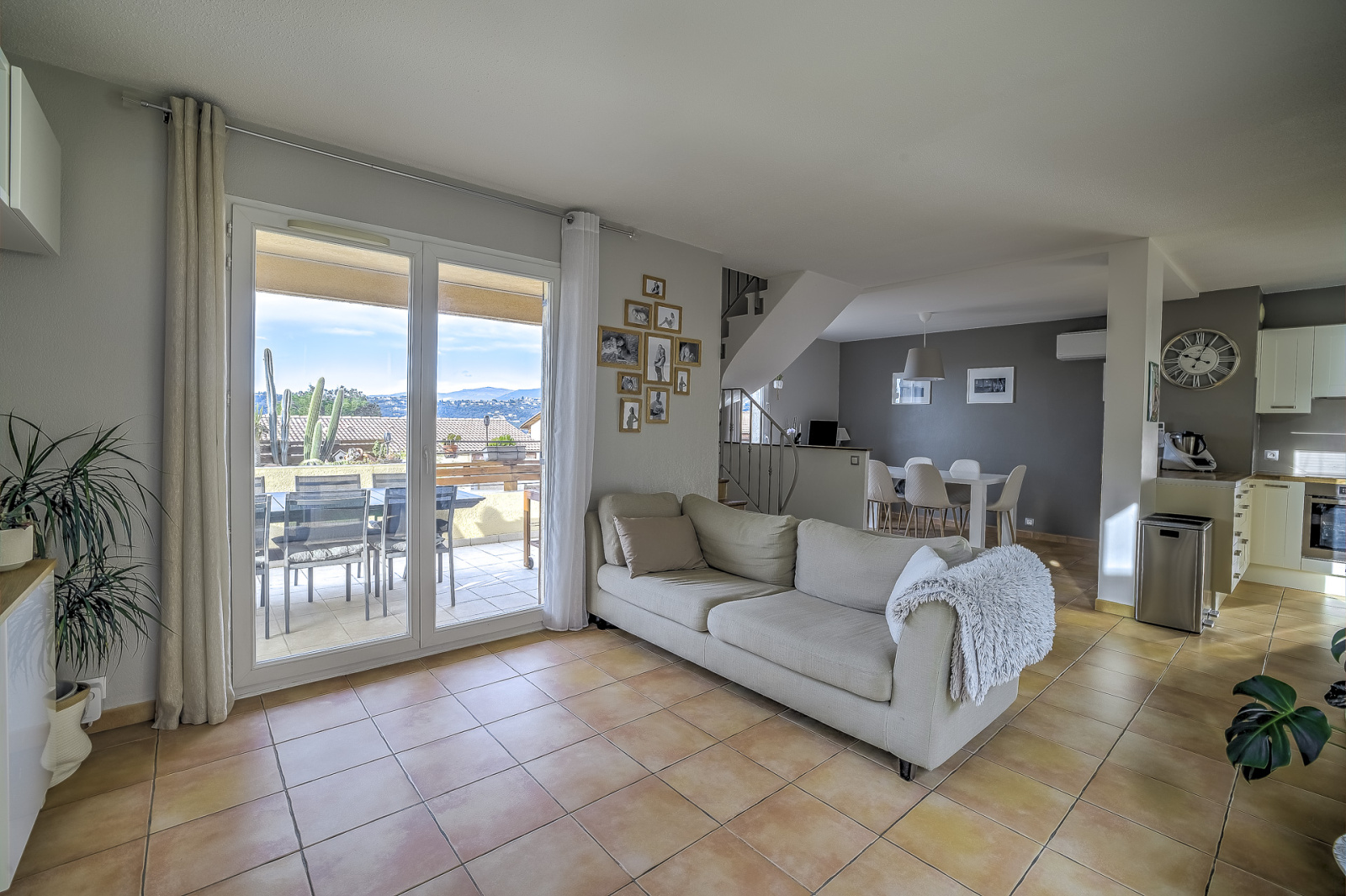 *** SOUS COMPROMIS *** Ravissante maison avec jardin et terrasse située sur les collines de Nice Ouest, dans le quartier recherché de la Corniche Fleurie, cette maison mitoyenne de 87 m², entièrement rénovée et répartie sur trois niveaux, se trouve au sein d’une résidence sécurisée, garantissant sérénité et tranquillité. Elle offre un cadre de vie paisible et une jolie vue dégagée sur la vallée.