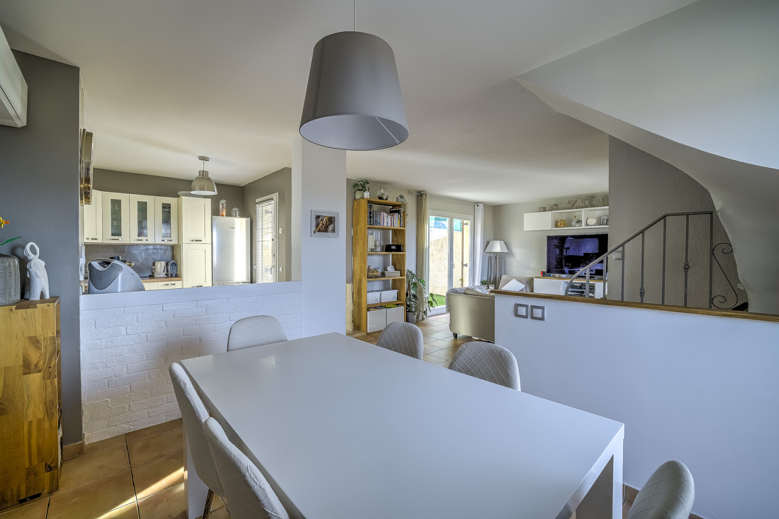 Au 1er étage, une spacieuse pièce de vie baignée de lumière s'ouvre à l'Ouest sur une agréable terrasse, idéale pour profiter du soleil couchant, et à l'Est sur un jardin privé, parfait pour des moments de détente ou des soirées entre amis. La cuisine ouverte, entièrement équipée, vient sublimer cet espace convivial et chaleureux.